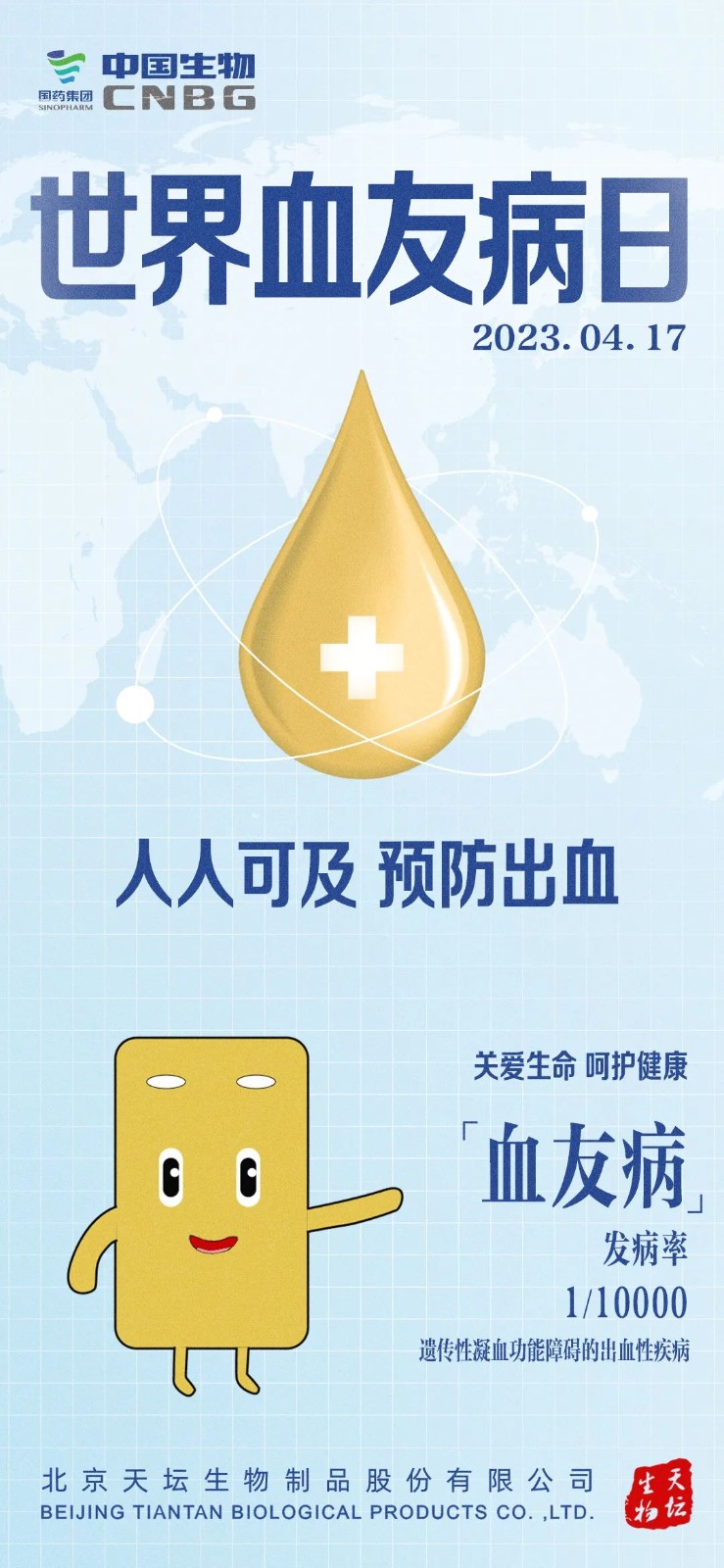 1989年世界血友病聯(lián)盟將每年4月17日設(shè)定為“世界血友病日”,旨在喚起全社會(huì)對(duì)血友病的認(rèn)知和關(guān)注,并積極為血友病患者提供支持和幫助,今年4月17日是第35個(gè)“世界血友病日“,讓我們一起來了解血友病,關(guān)愛“玻璃人”。